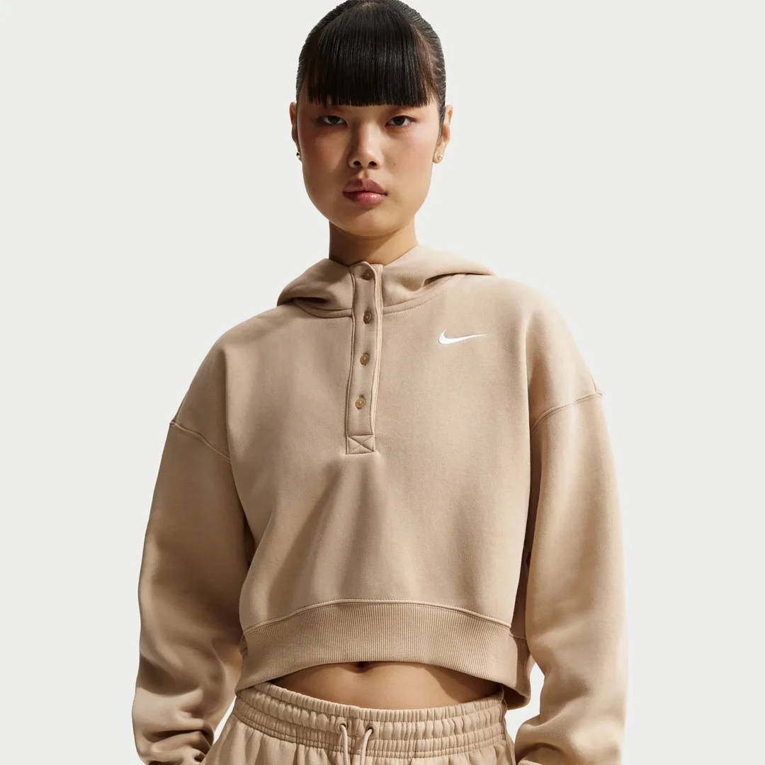 Nike Phoenix Fleece Oversized Cropped Henley Hoodie